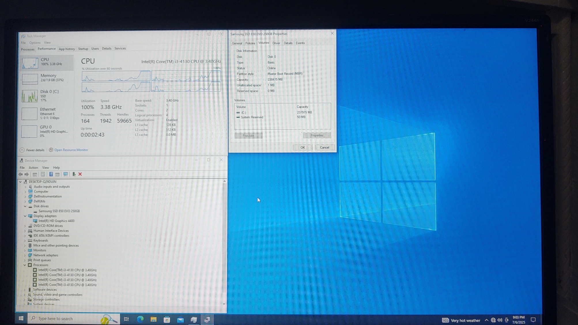 | Hard Disk Model | Samsung SSD 850 EVO 250GB |