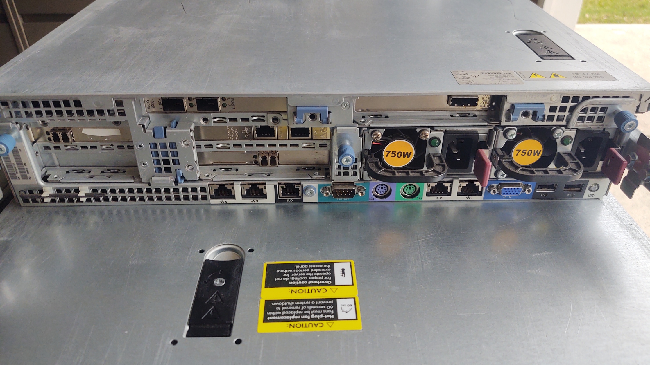 10Gbit FCoE Card, extra network card, two fiber channel cards and the array controller has an external port (see bottom)