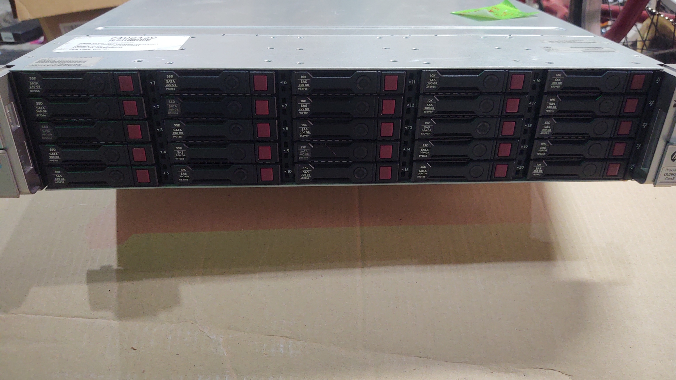 OS = 240GB SSD (Mirrored)DATA = 19TB (900GB Drives Raid 5 with spare)